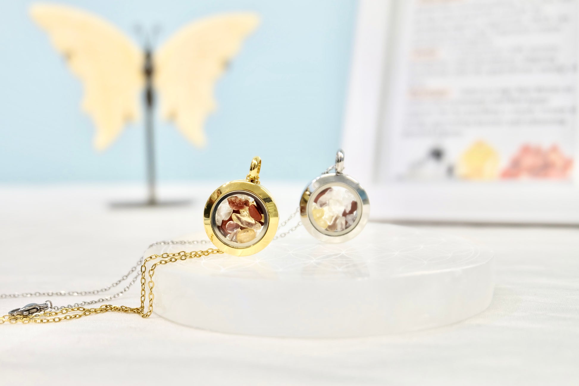 This stainless steel locket necklace is filled with genuine healing crystals selected specifically for Aries. Whether you are drawn to the energy of clear quartz, citrine, or red jasper, this protective stone necklace is designed to support and empower the courageous and adventurous spirit of Aries.