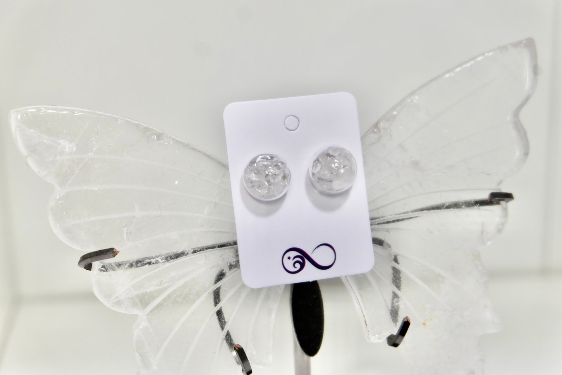 Uhani so narejeni po naročilu in vsak par bo videti nekoliko drugače zaradi naravnih variacij barv in oblik kristalov. Drobni kristalčki v bunkicah se med nošenjem tudi nežno premikajo.
