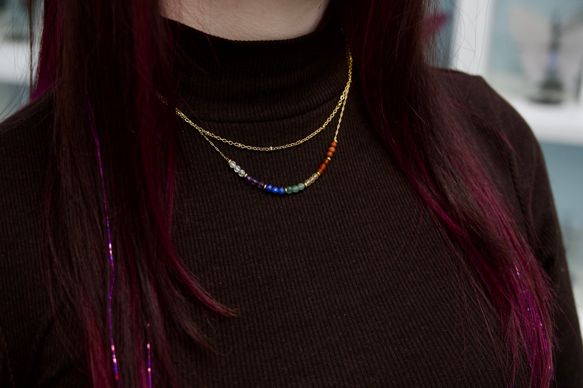 ✨ Uskladi svojo energijo in ustvarjaj svoje sanje z namenom. Ogrlica za ravnovesje čaker je zasnovana kot vsakodnevni opomnik, da tvoja energija teče, tvoja pot je podprta in tvoje sanje se postopoma uresničujejo.