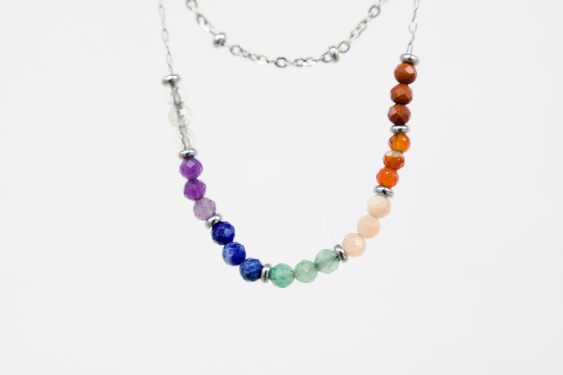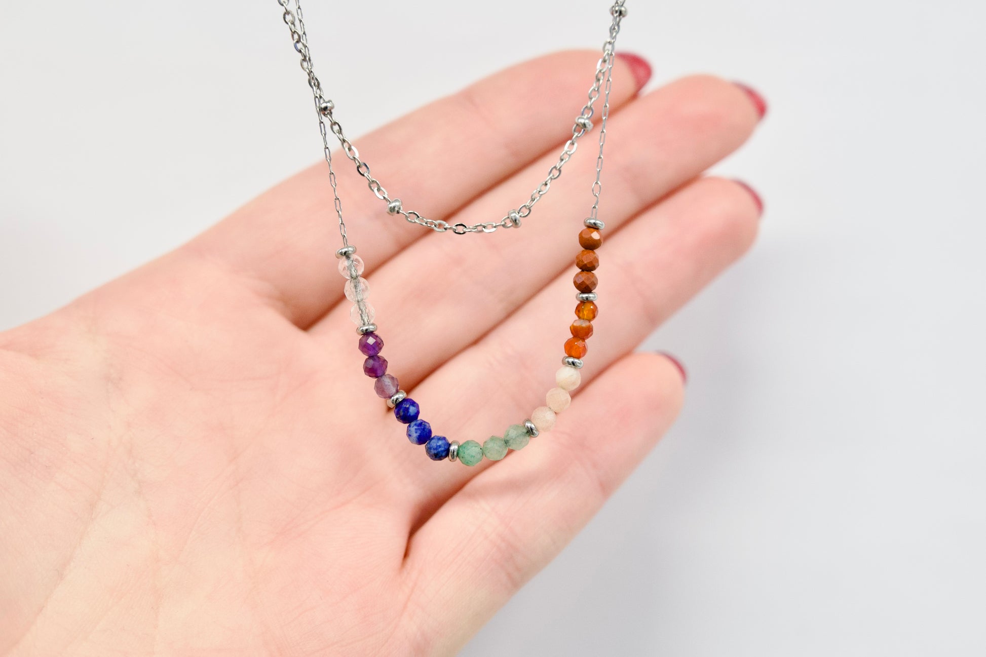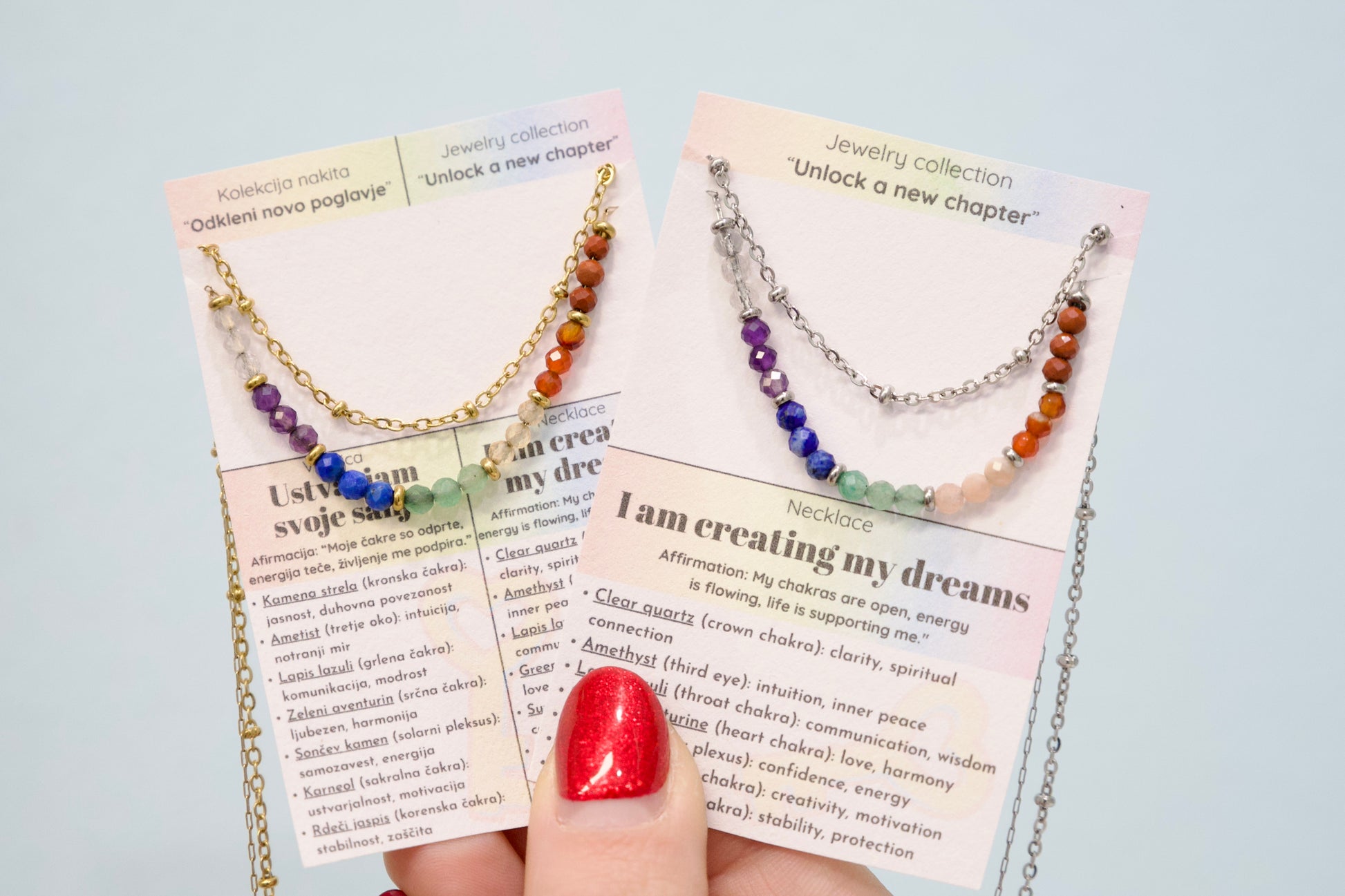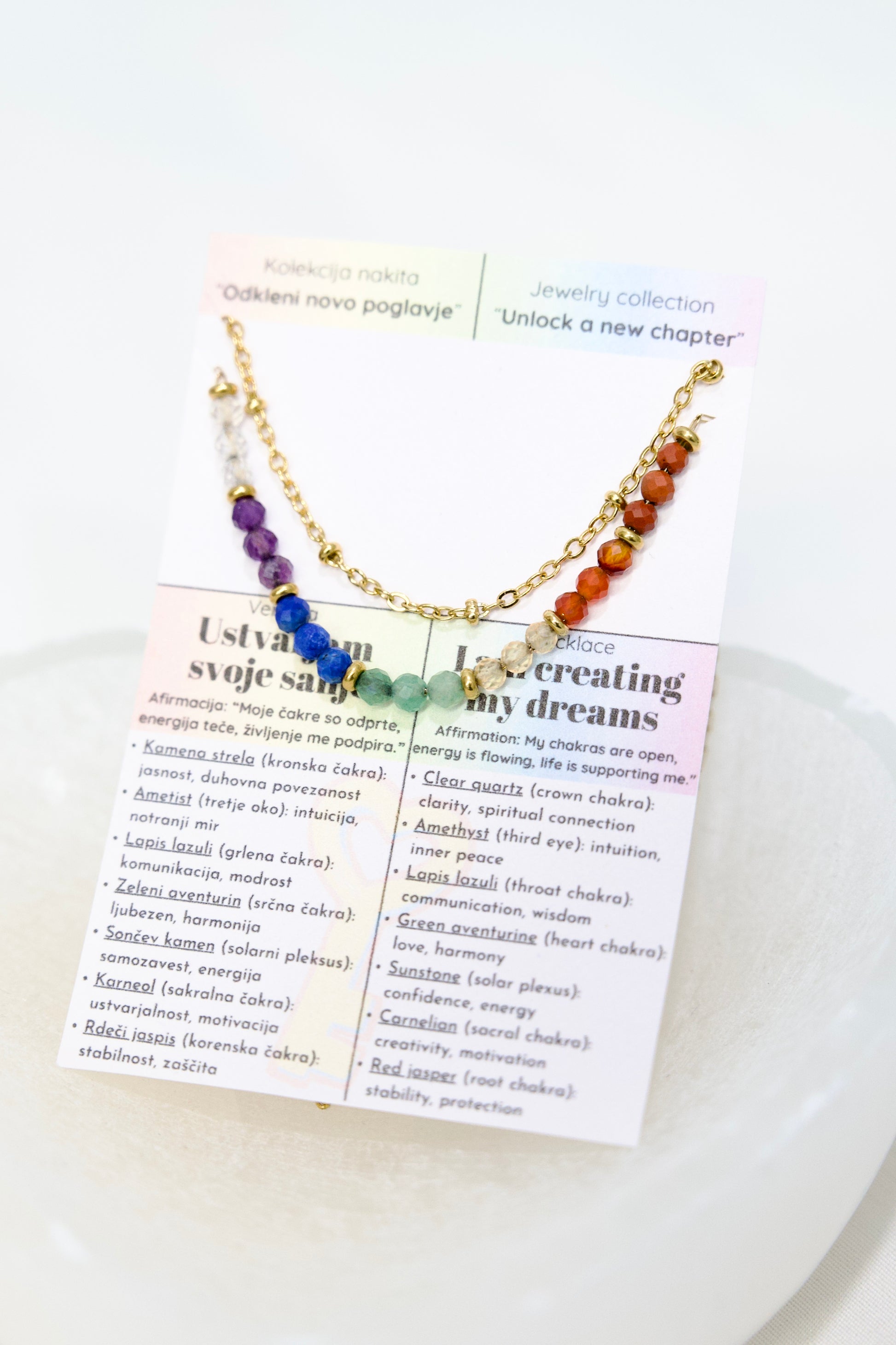 Vsak skrbno izbran kamen ustreza eni izmed sedmih čaker in podpira popolno energijsko usklajenost: