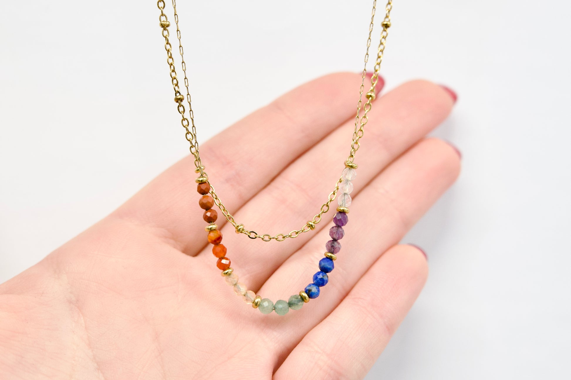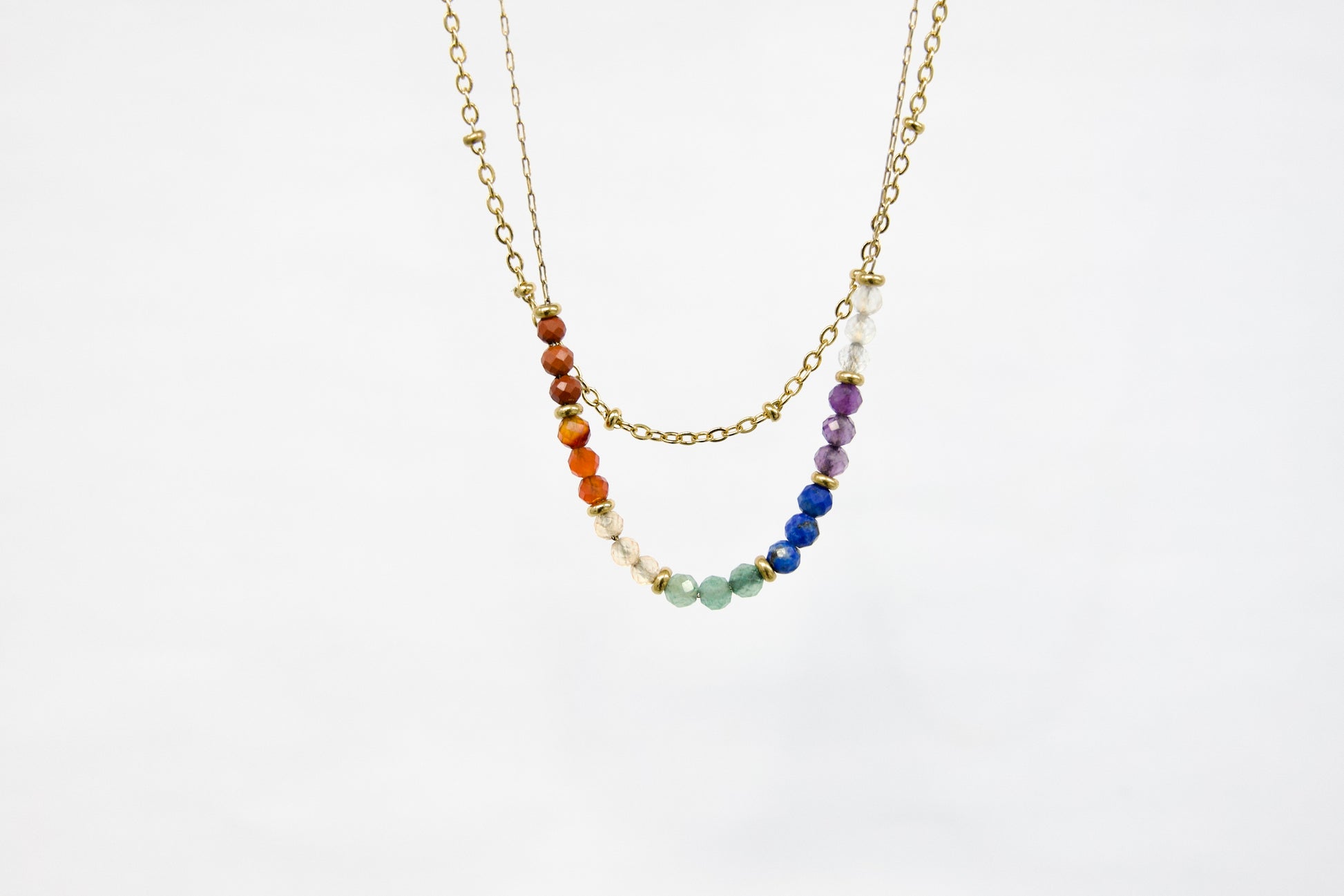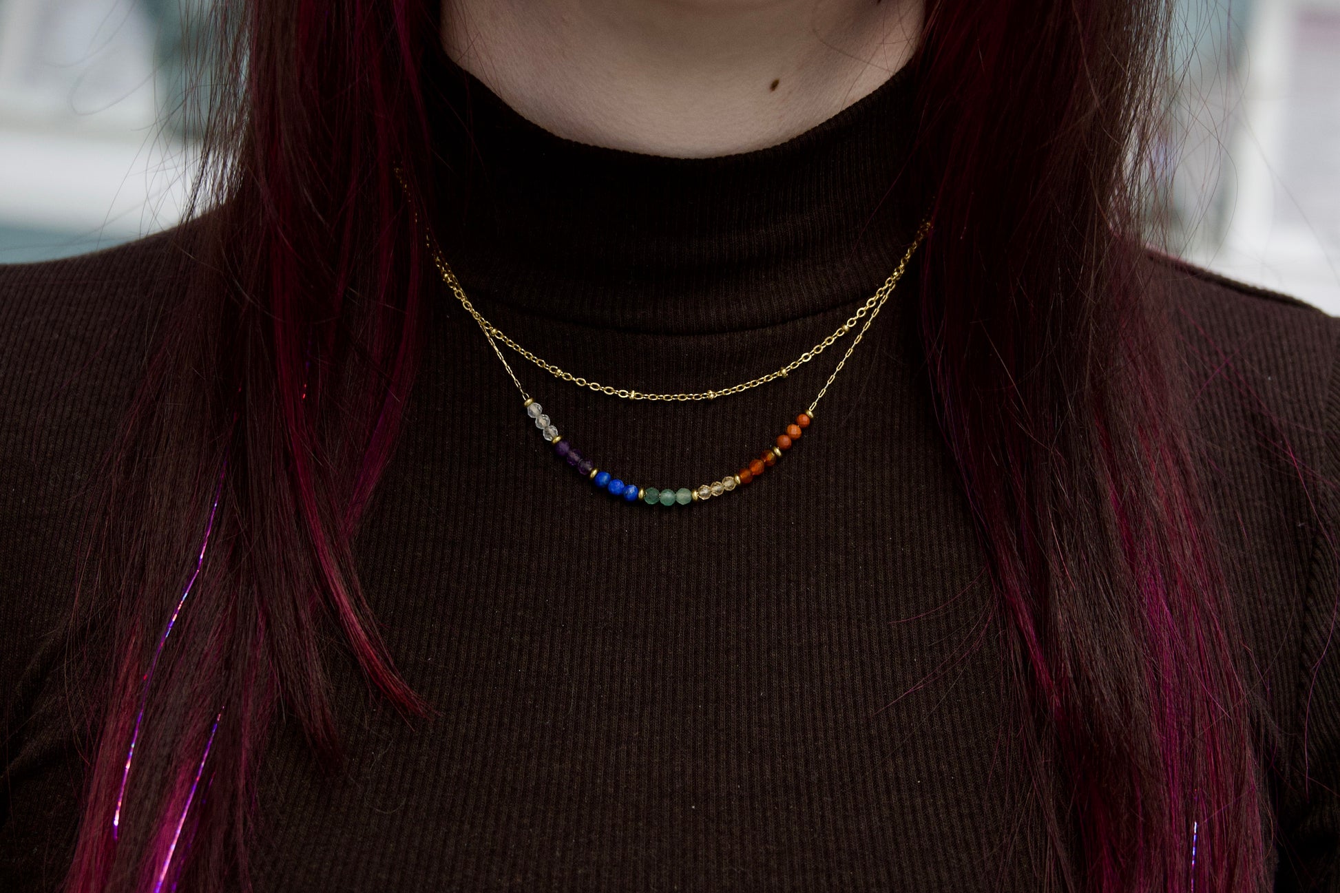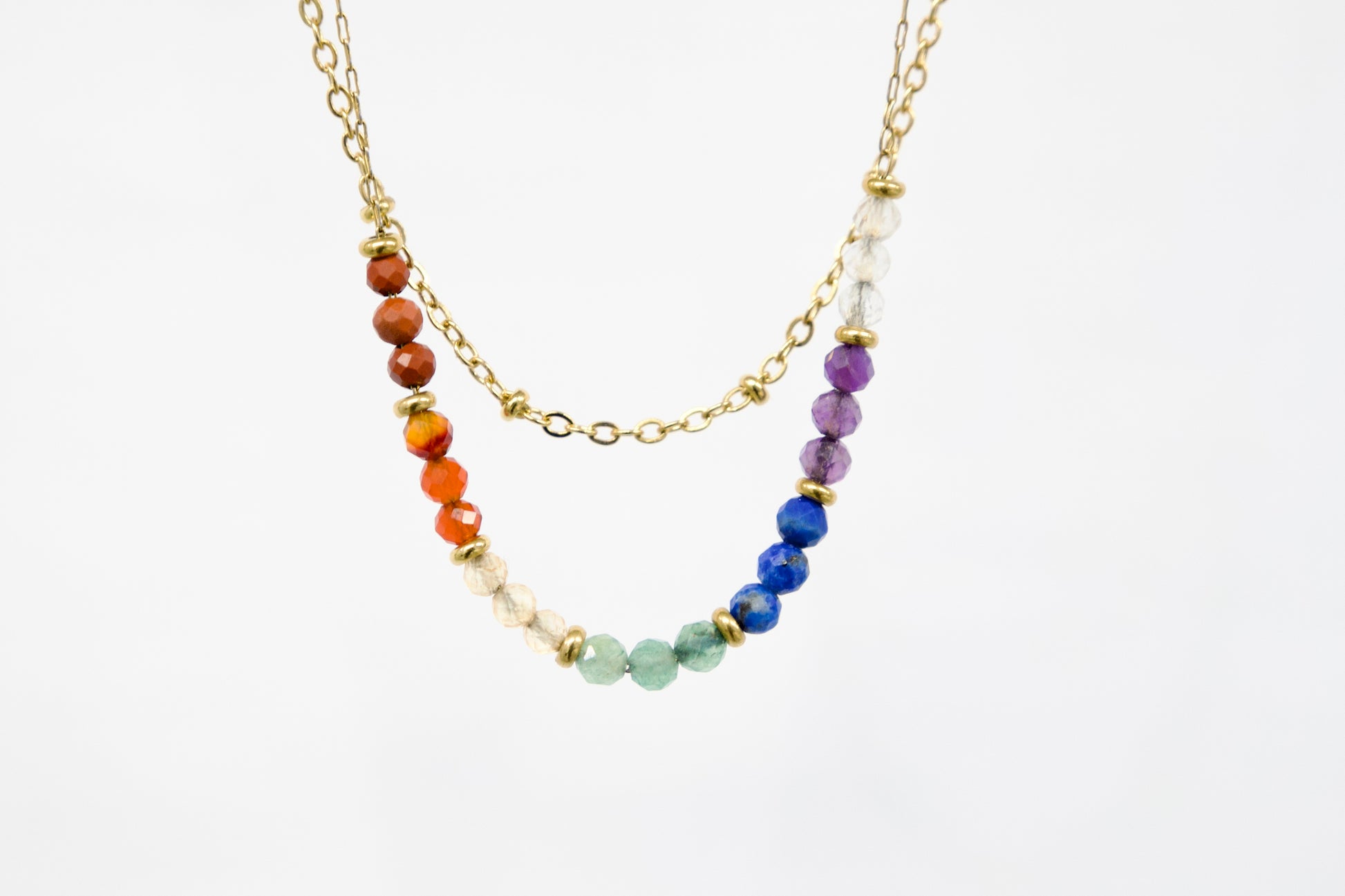 Vsak skrbno izbran kamen ustreza eni izmed sedmih čaker in podpira popolno energijsko usklajenost: