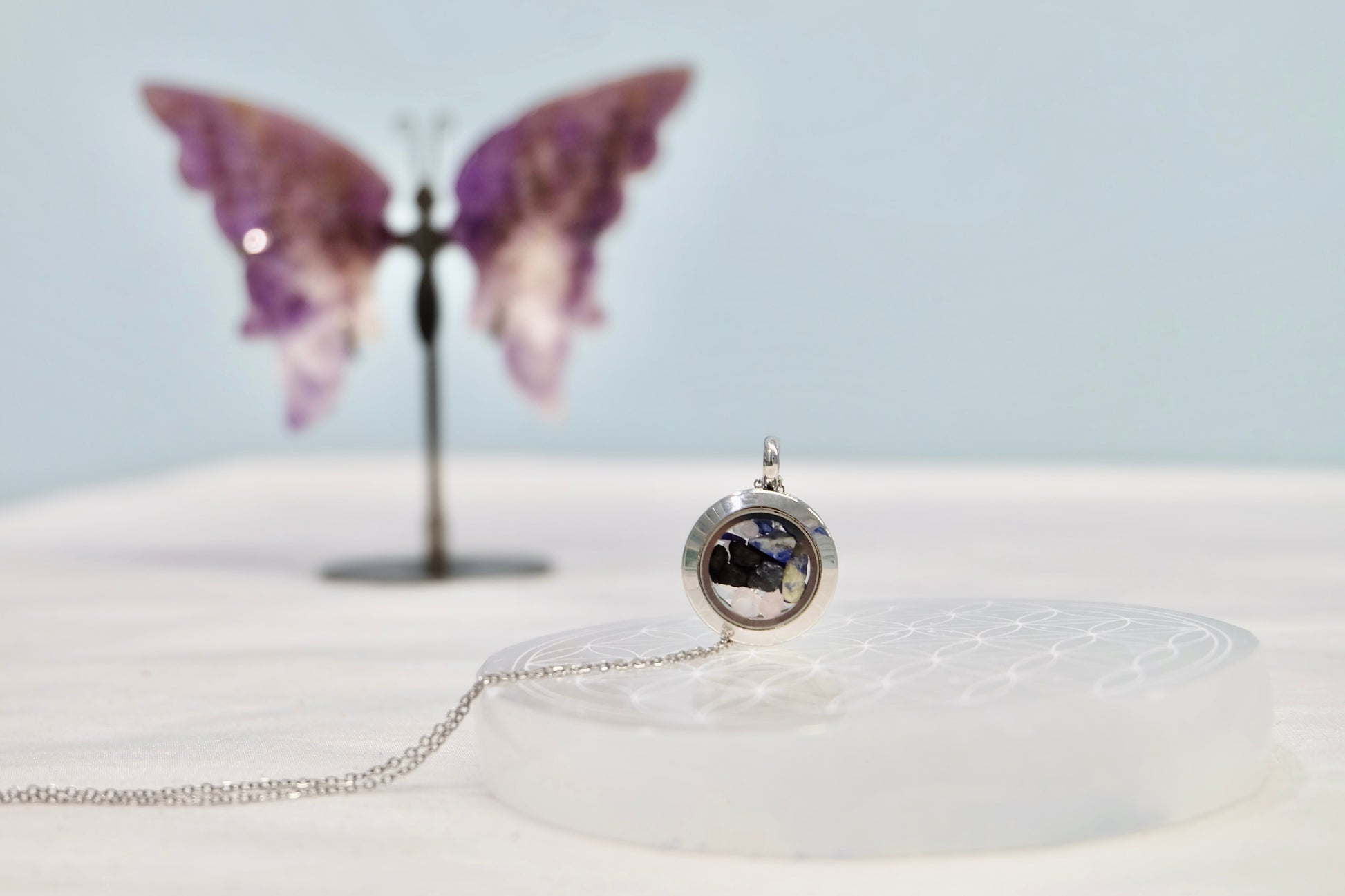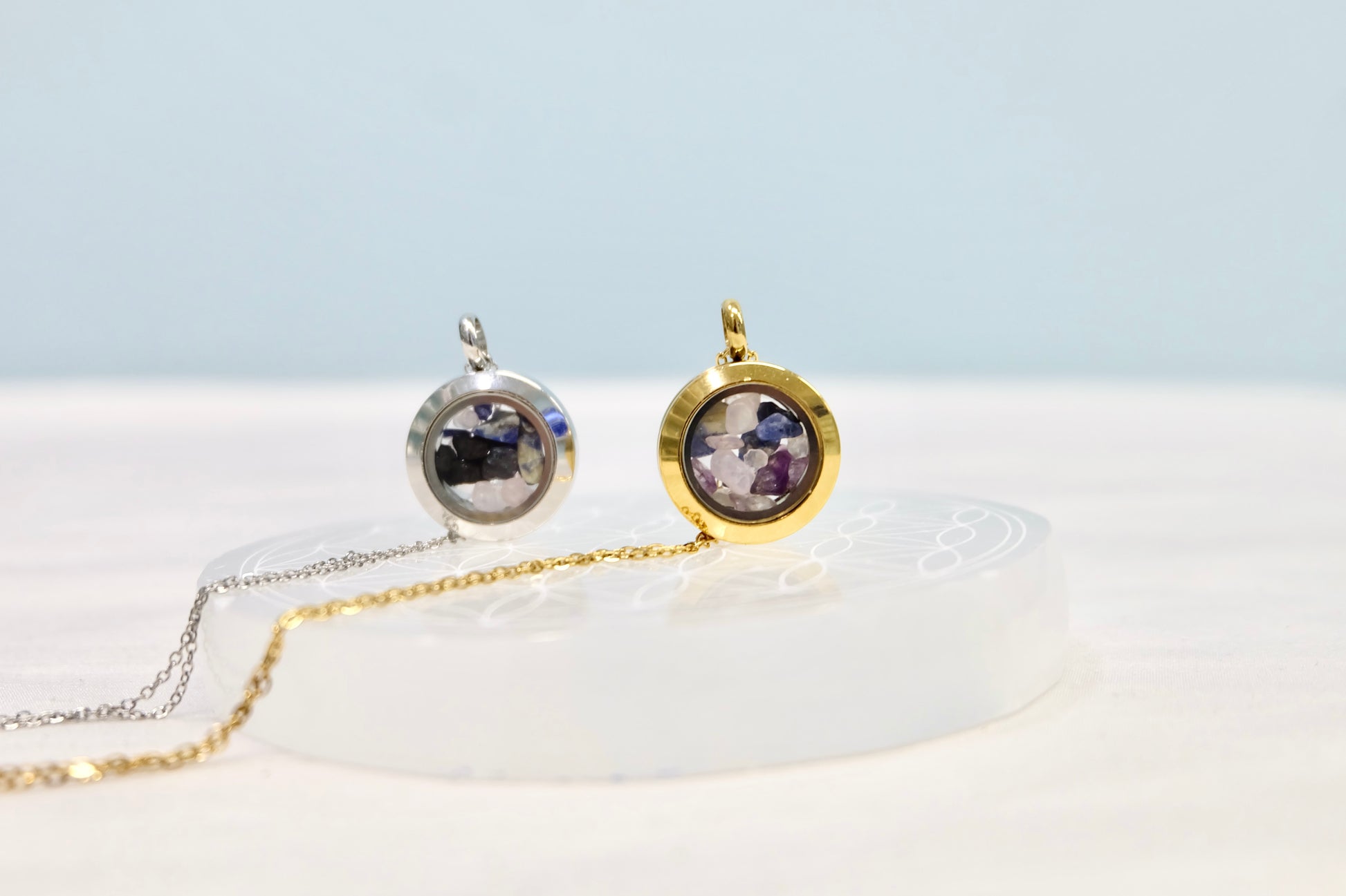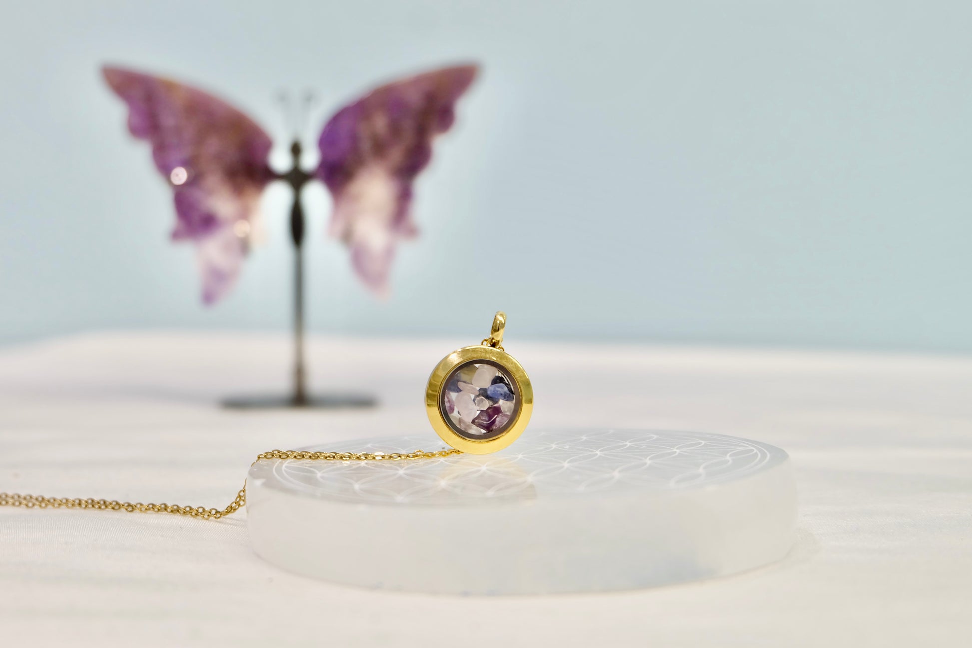 ✨ Zalepljen medaljon – Kristali ostanejo varno zaprti, lahko pa ga na željo pustimo odlepljenega (pustite opombo ob naročilu).