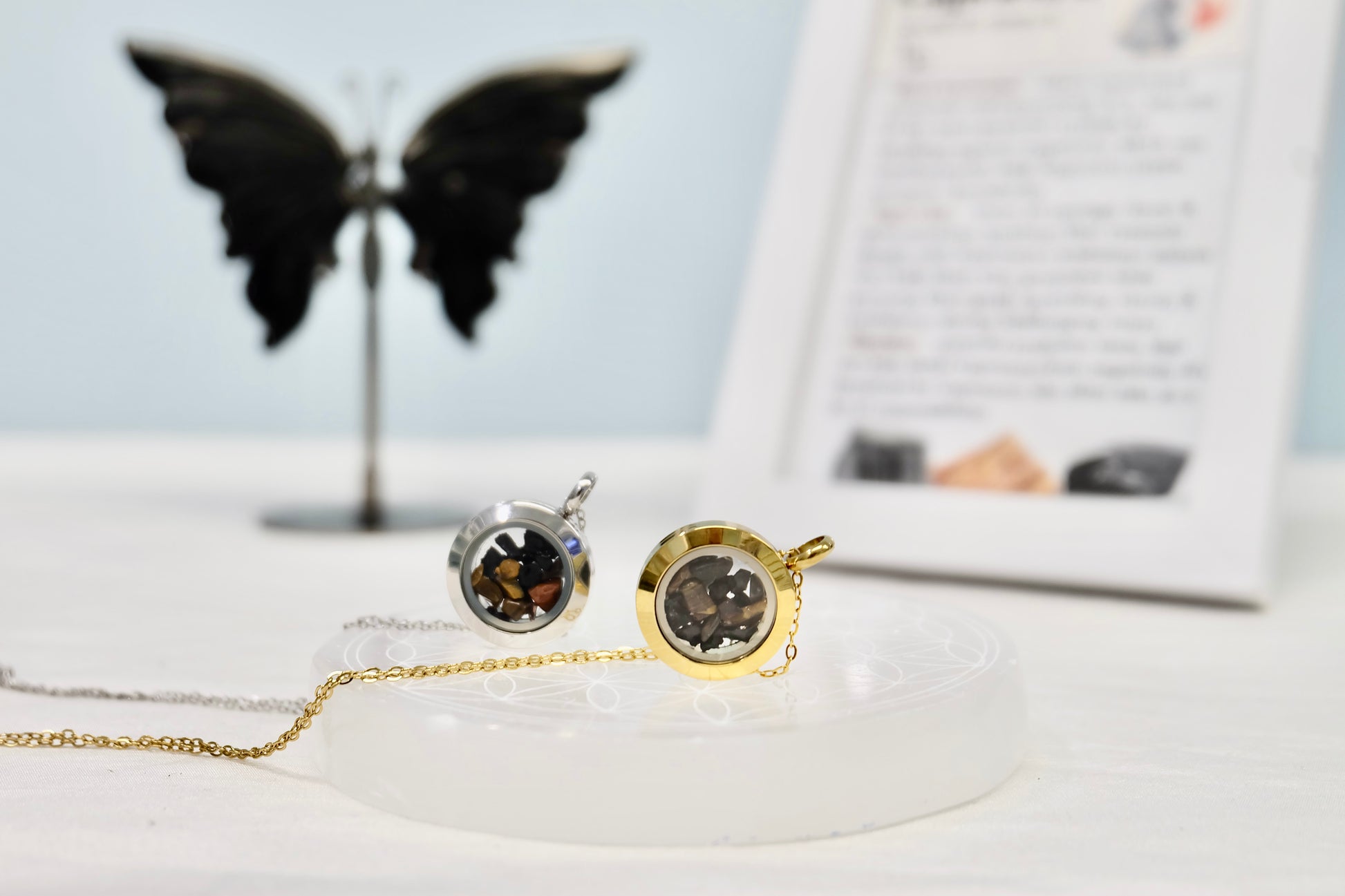 ✨ Zapečaten medaljon – Kristali ostanejo varno zaprti, lahko pa ga na željo pustimo nezapečatenega (pustite opombo ob naročilu).