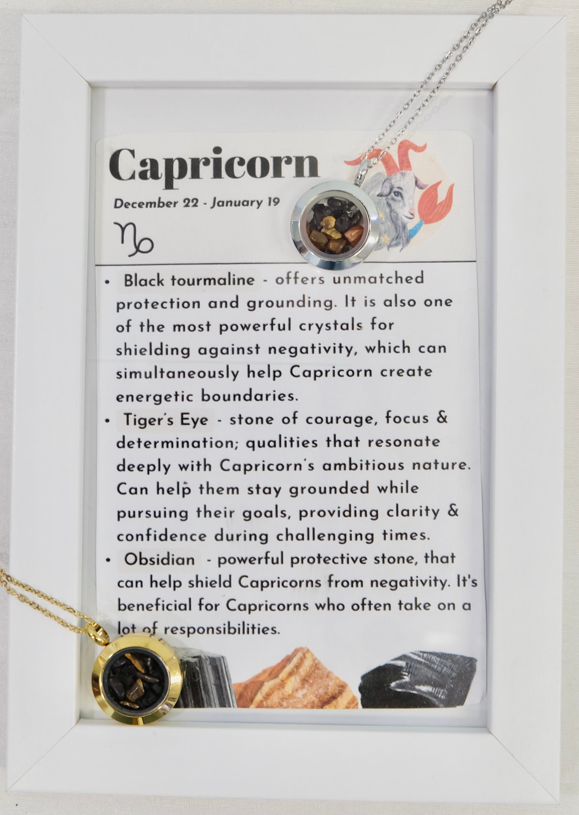 Jeklena verižica s steklenim medaljončkom, napolnjenim s kristali za horoskopski/zodiak znak Kozorog