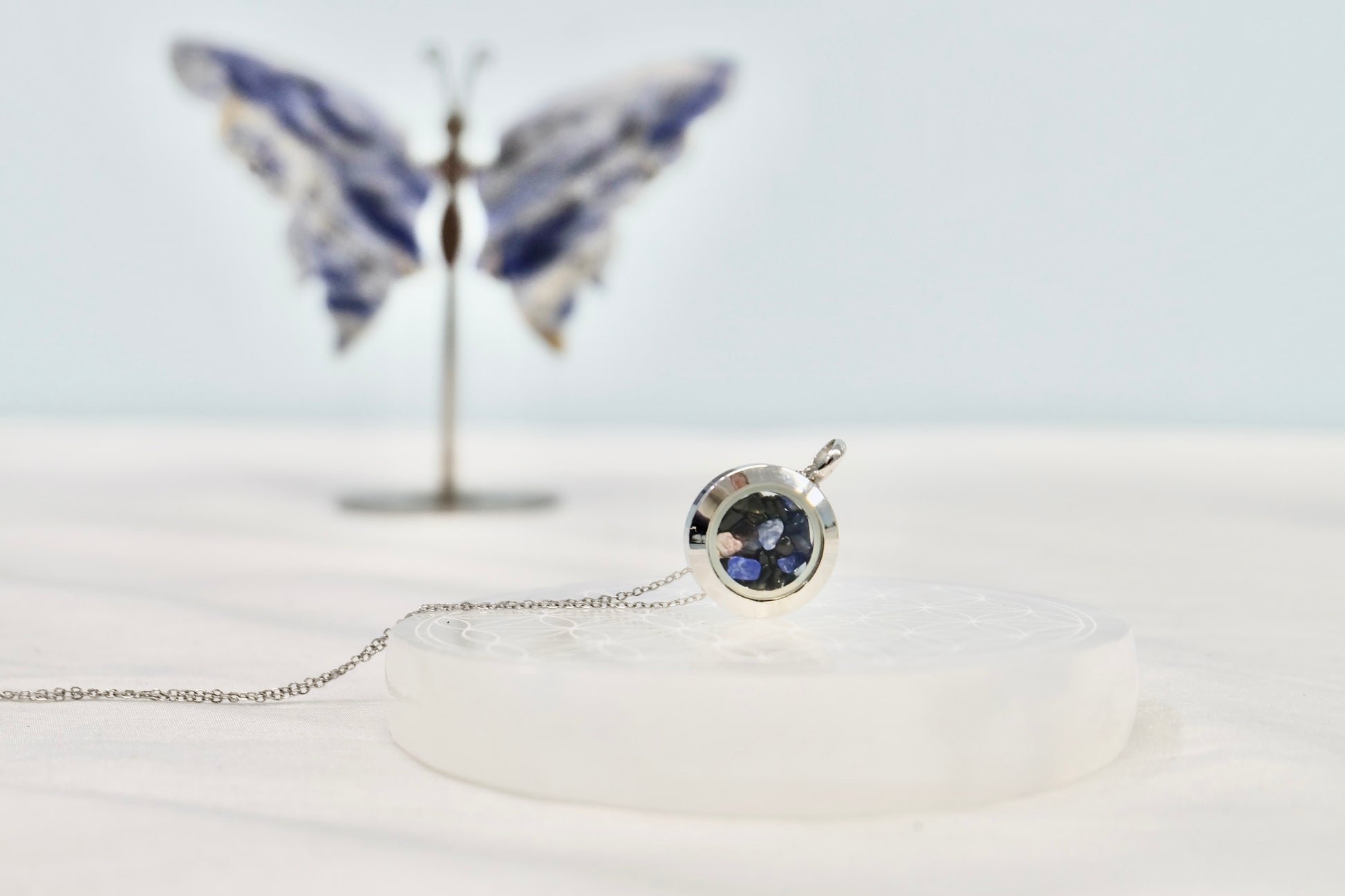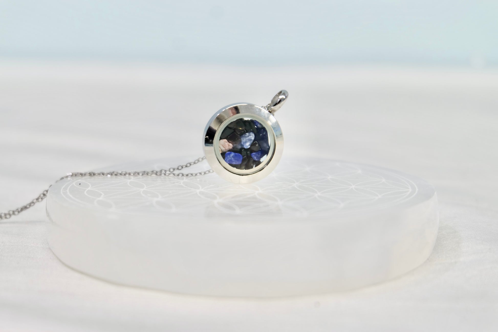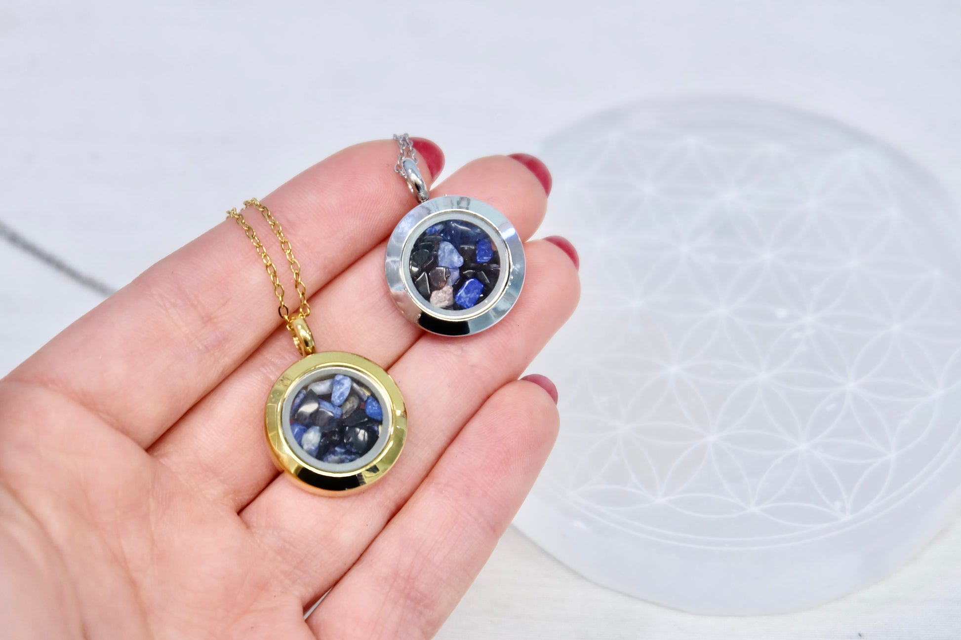 ✨ Zalepljen medaljon – Kristali ostanejo varno zaprti, lahko pa ga na željo pustimo odlepljenega (pustite opombo ob naročilu).