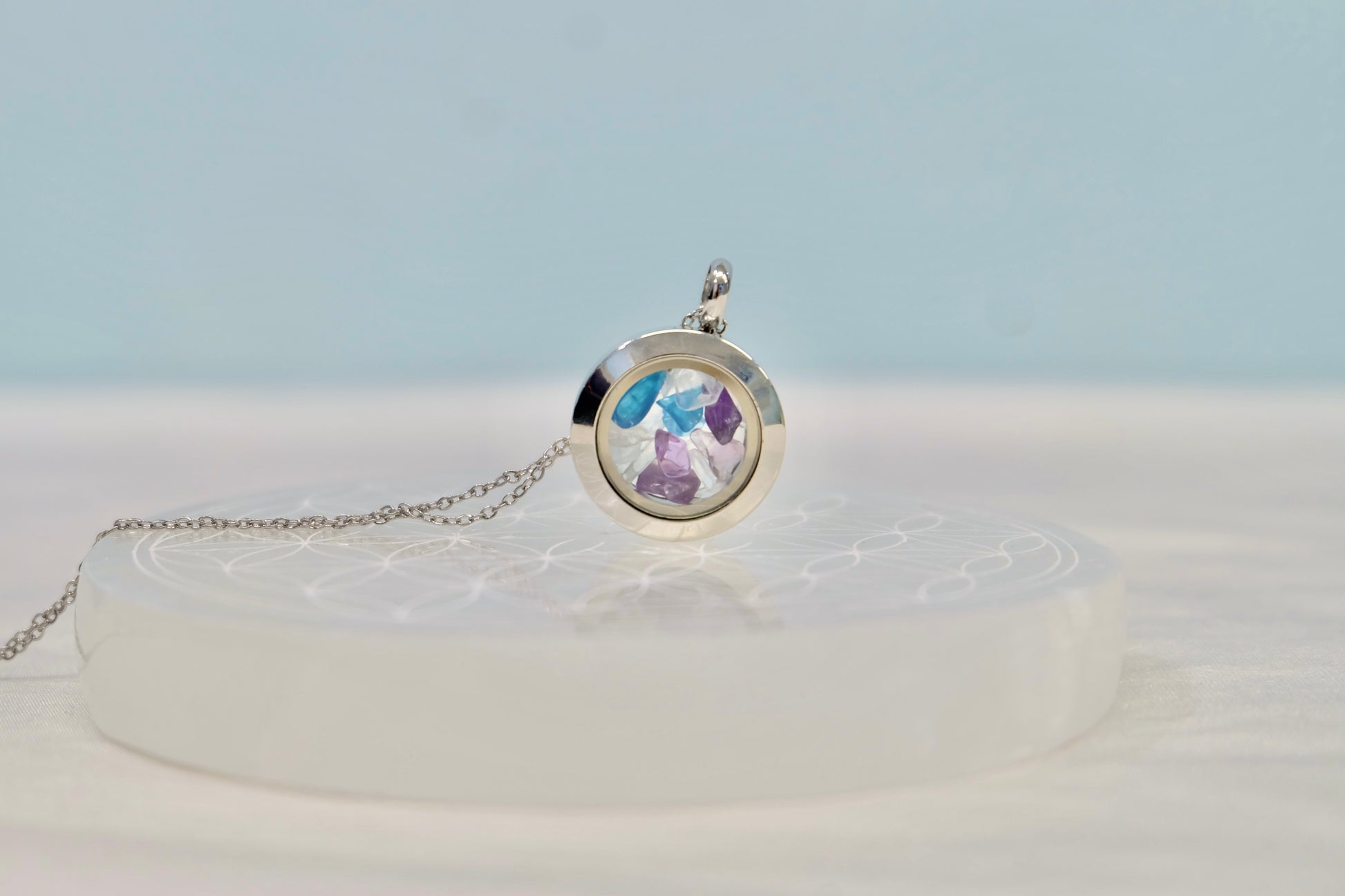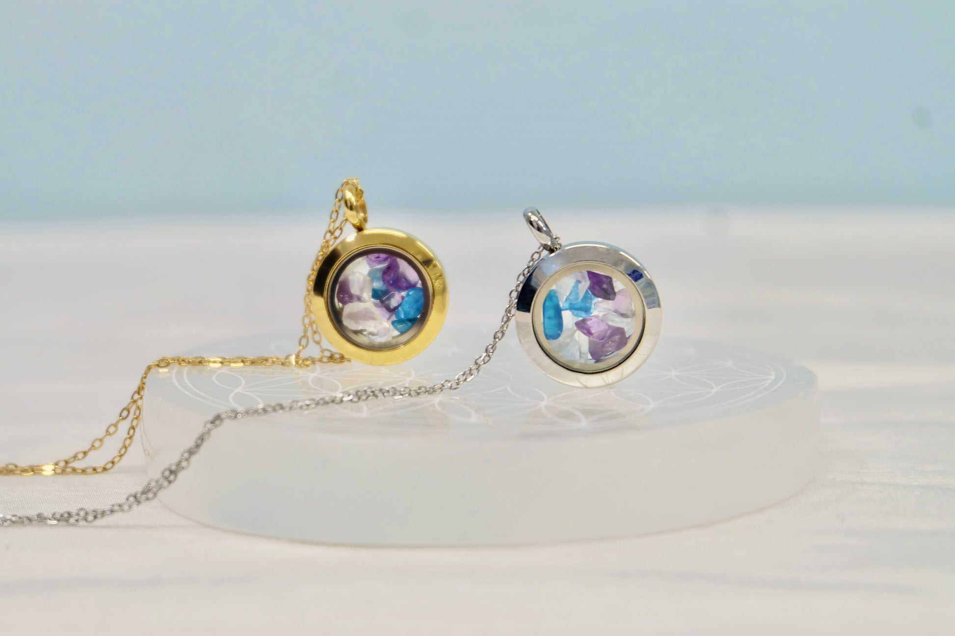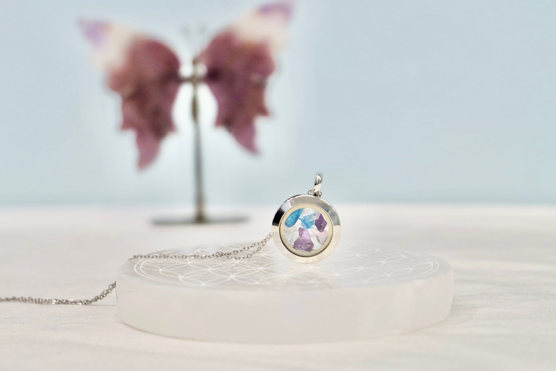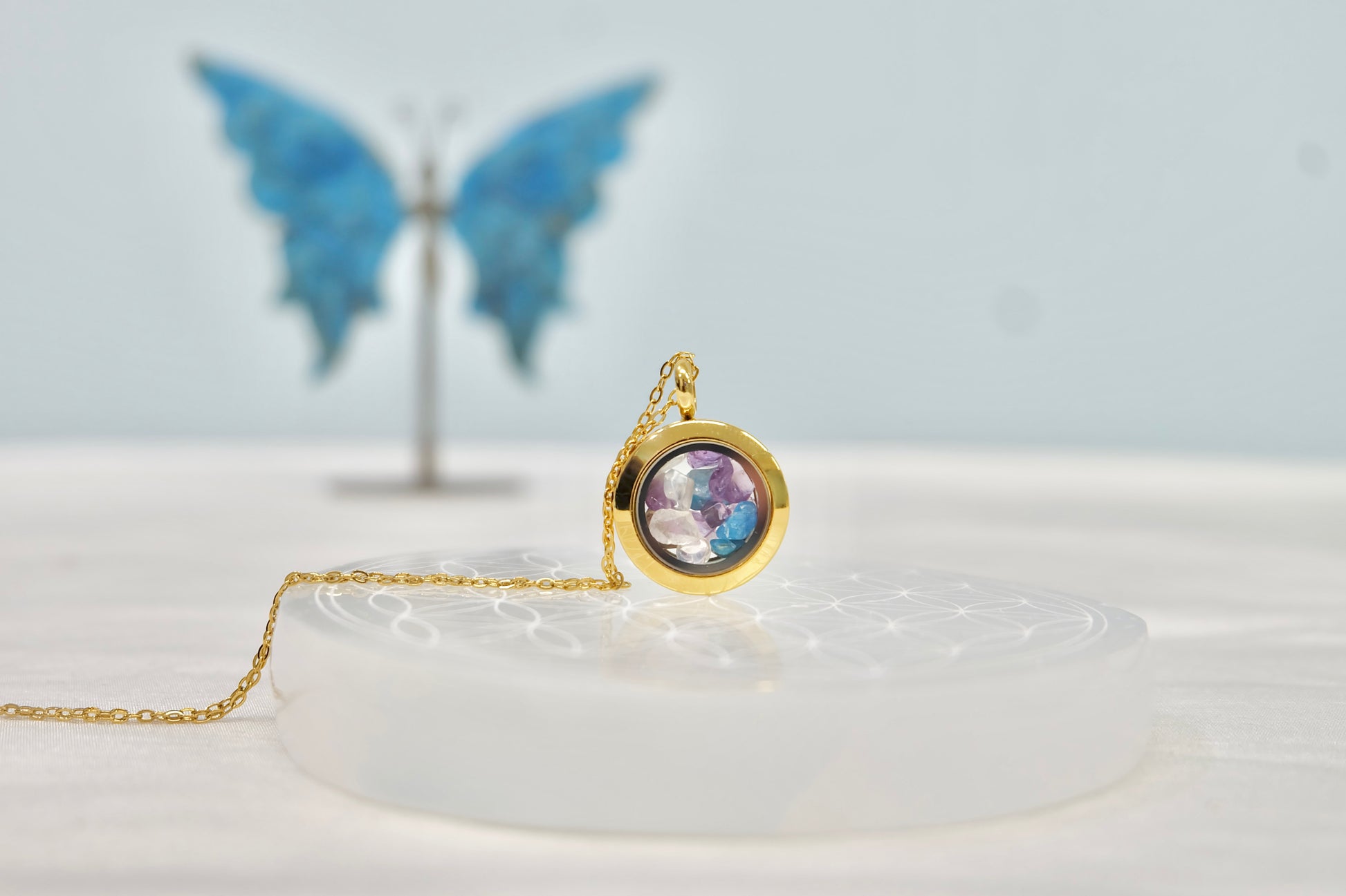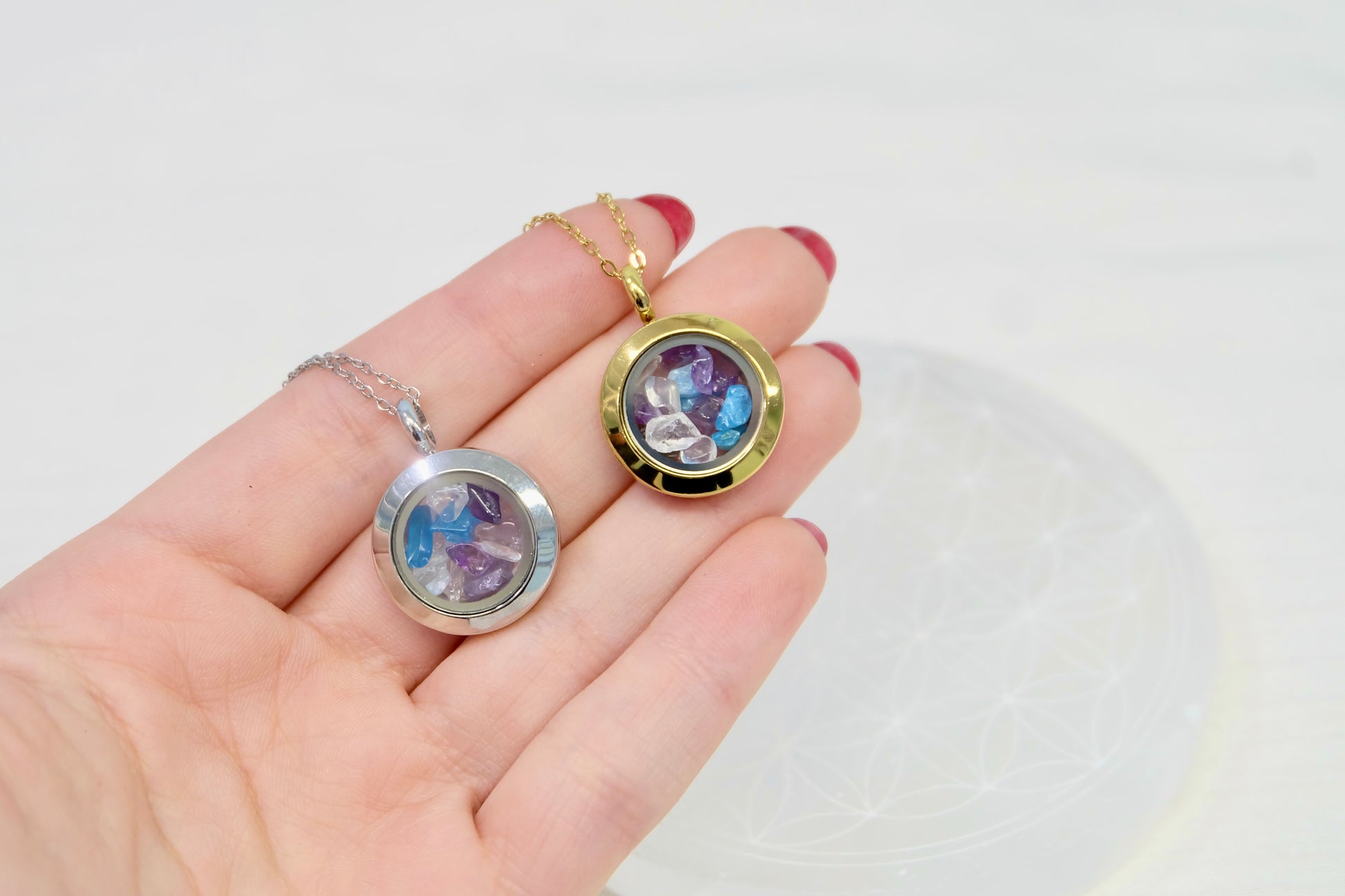 ✨ Zalepljen medaljon - Kristali ostanejo varno zaprti, lahko pa ga na željo pustimo odlepljenega (pustite opombo ob naročilu).
