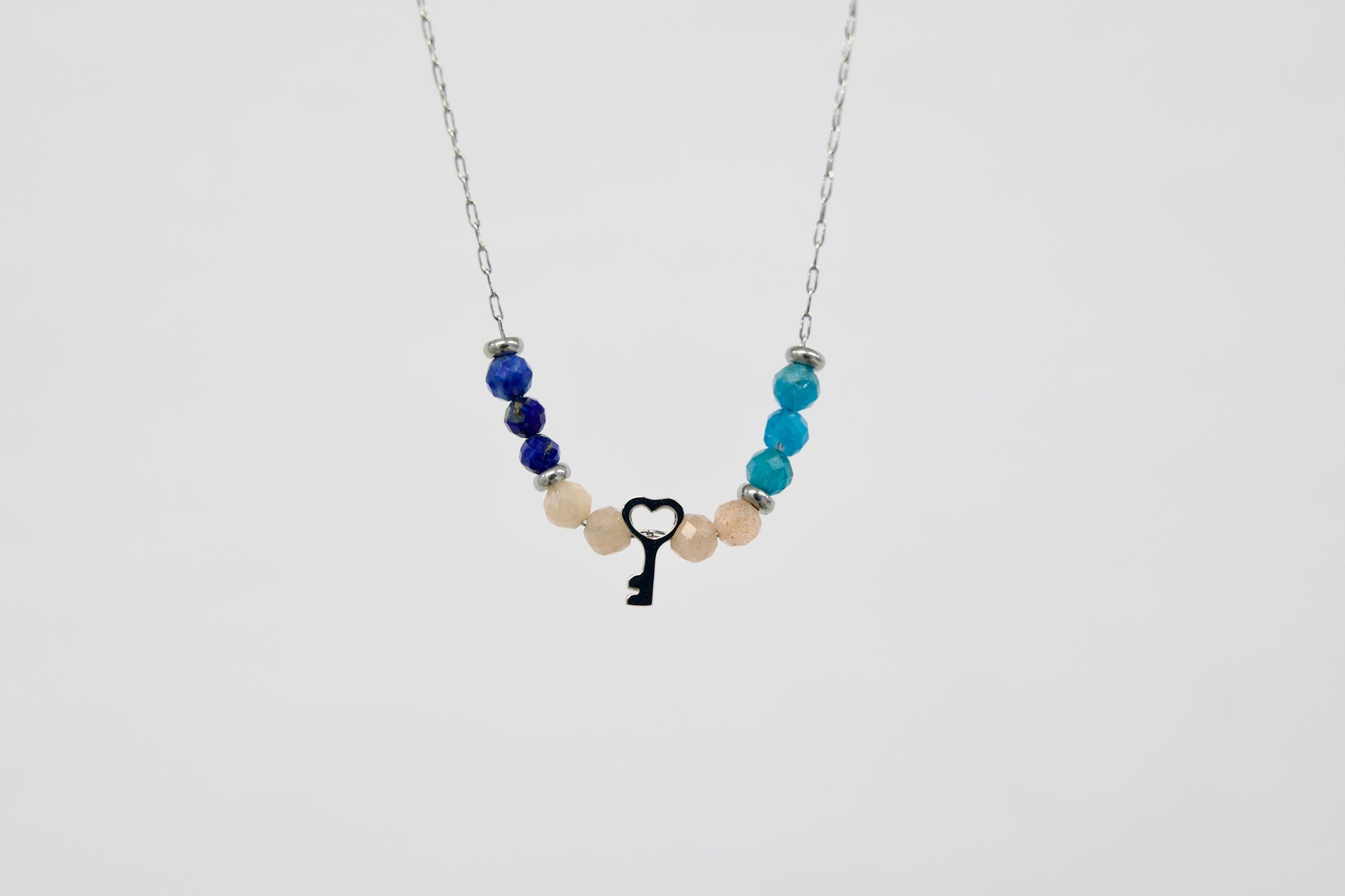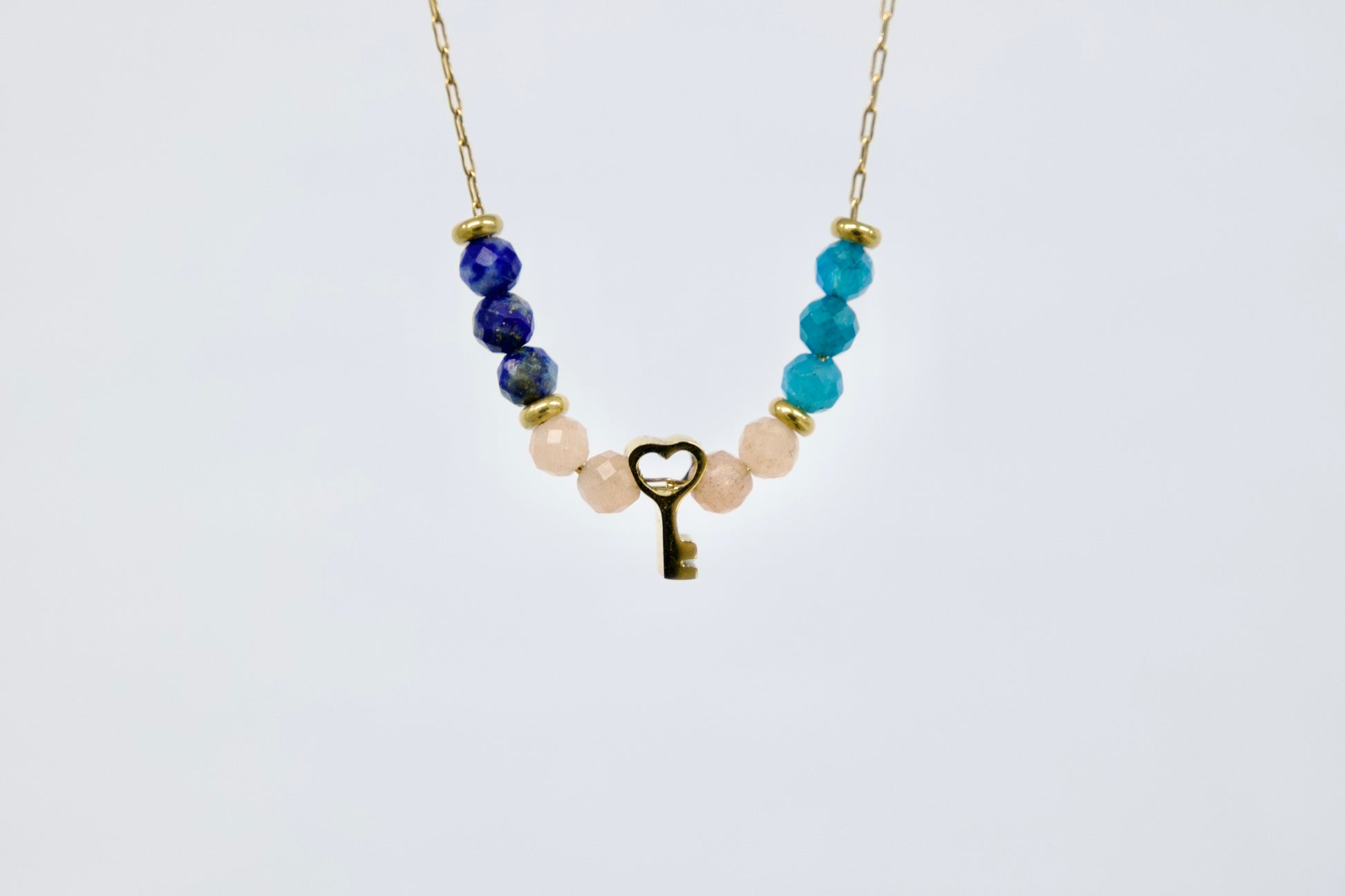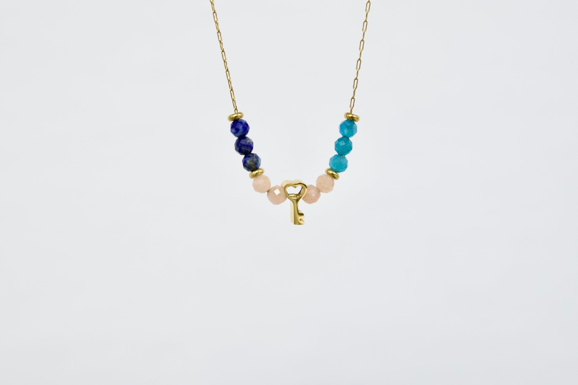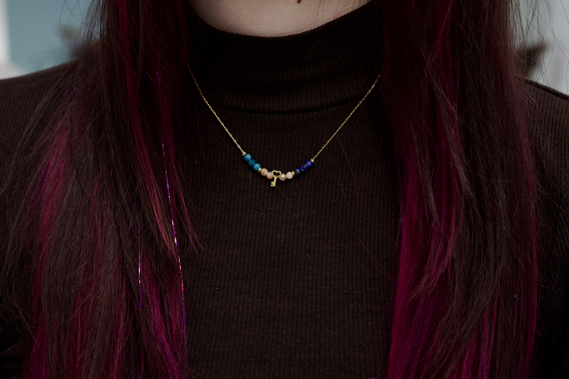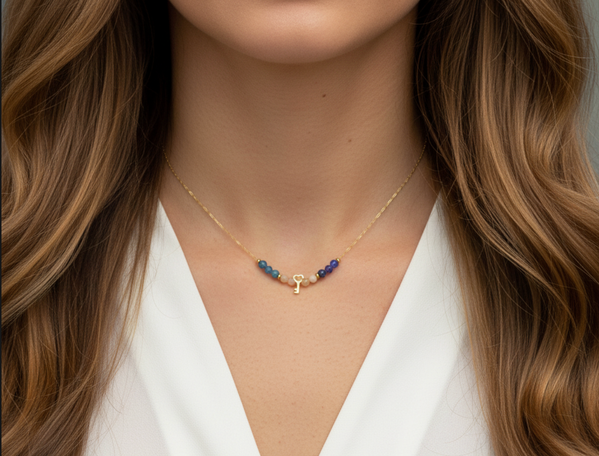 V središču ogrlice visi mini obesek v obliki ključa, ki simbolizira odklenjen potencial in moč, ki jo imaš za manifestacijo svojih želja.