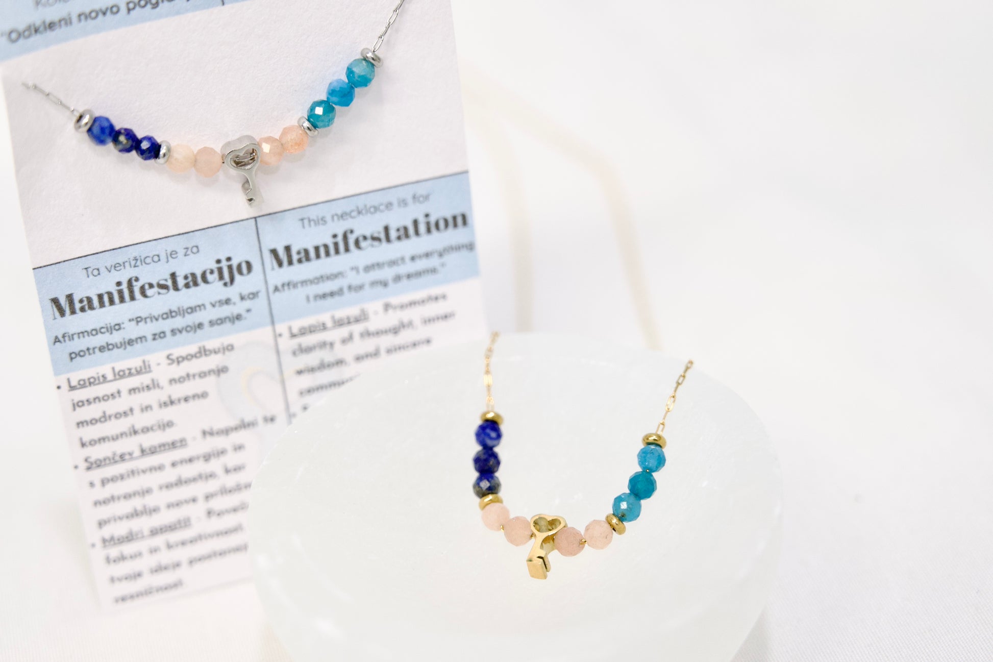 ✨ Uskladi svoje misli, energijo in namene s svojimi sanjami. Ta verižica za Manifestacijo je zasnovana kot vsakodnevni opomnik, da v svoje življenje privlačiš priložnosti, ideje in podporo, ki jih potrebuješ za uresničitev svojih vizij.