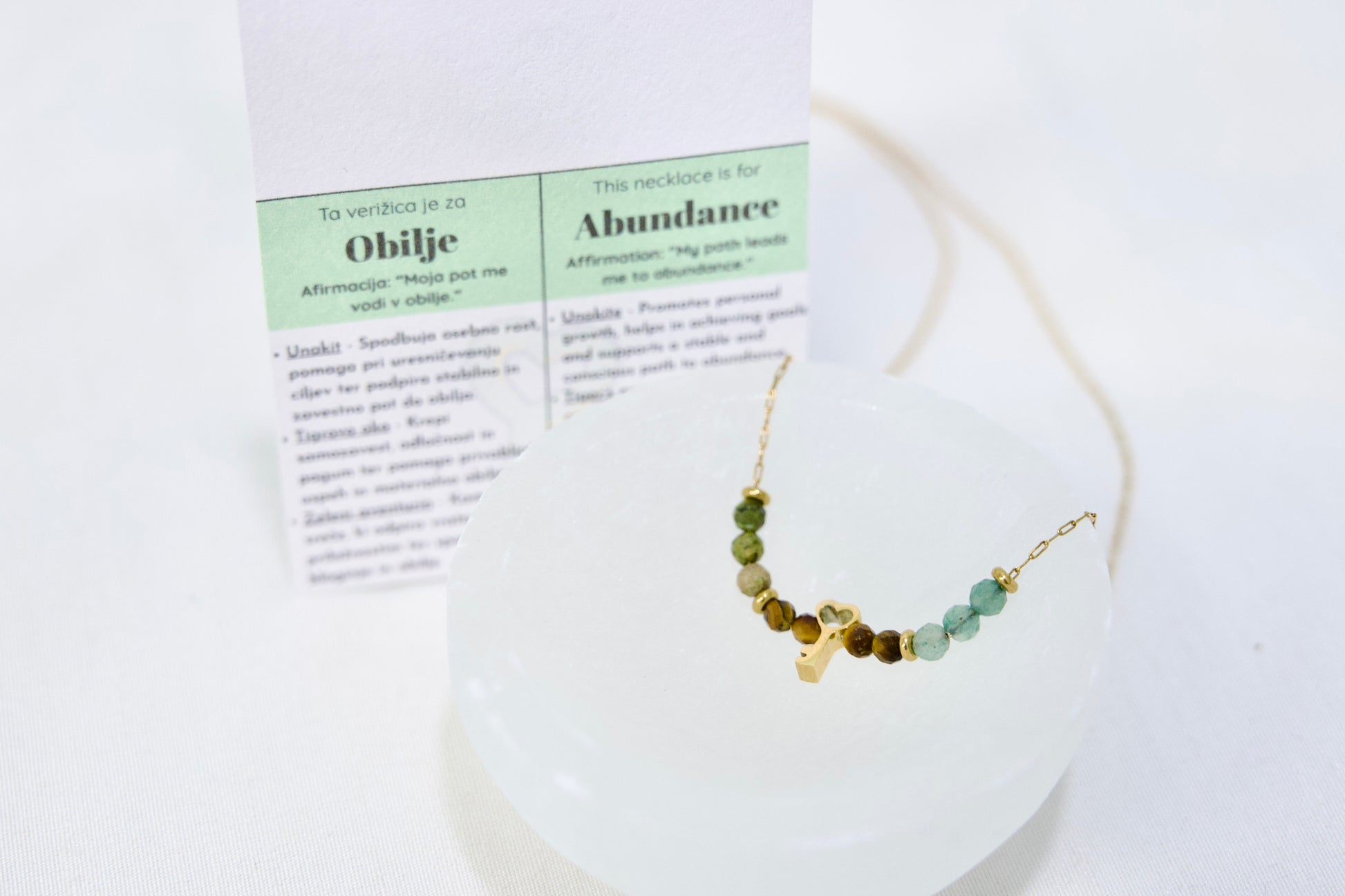 ✨ Hodi po svoji poti z jasnostjo, zaupanjem in vero v obilje. Ta ogrlica obilja te nežno spominja, da te tvoja pot vodi k rasti, uspehu in novim priložnostim.
