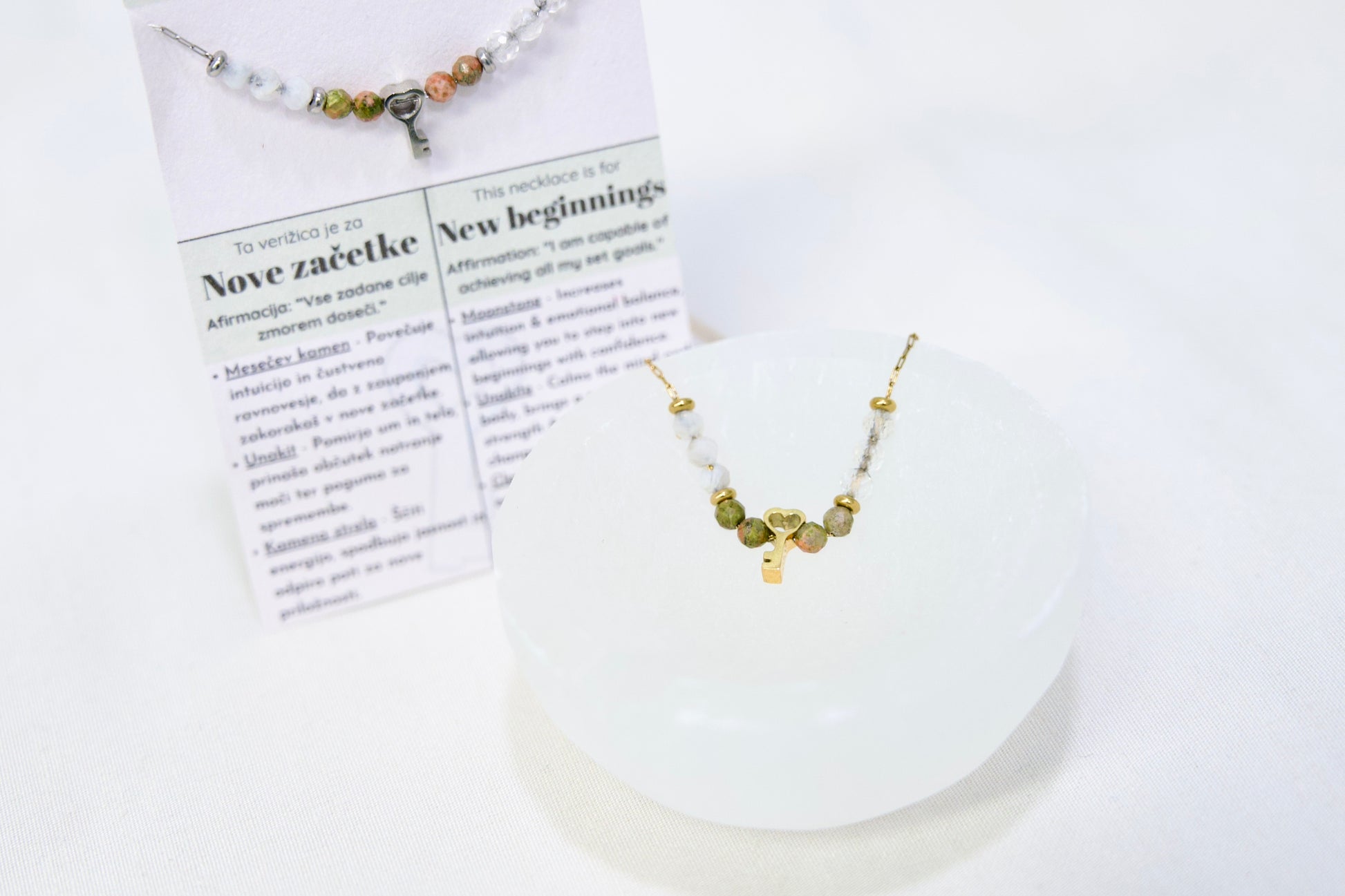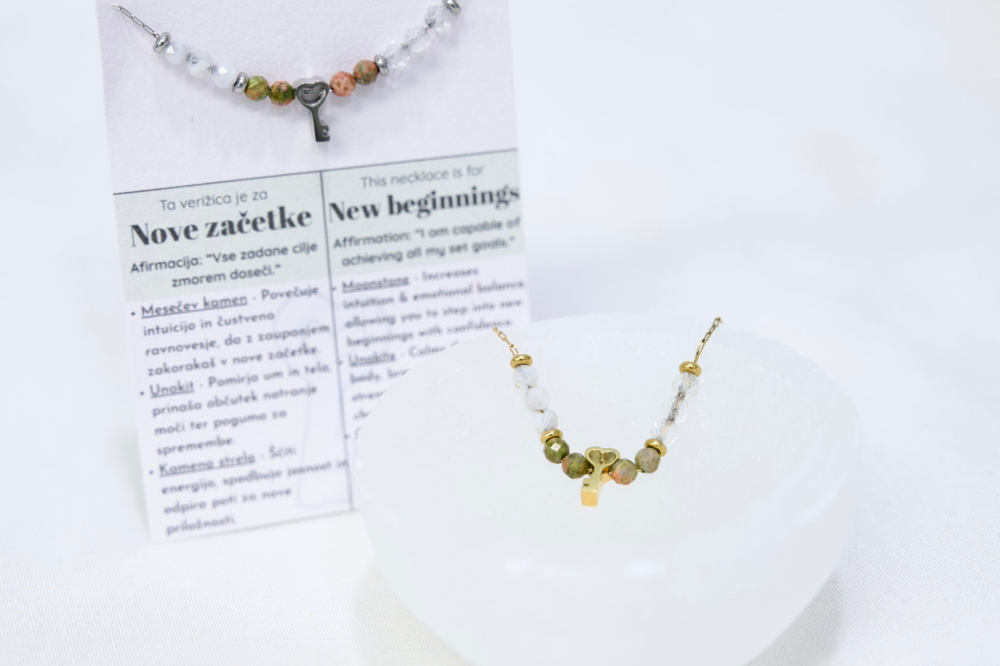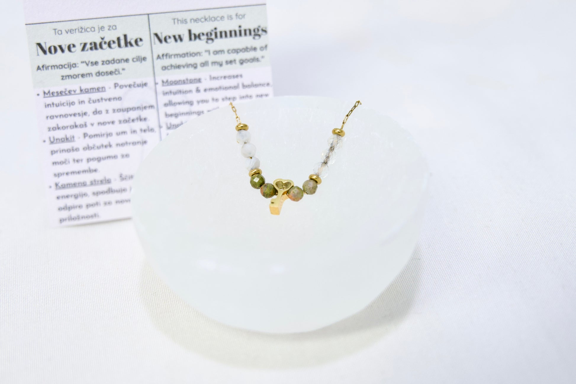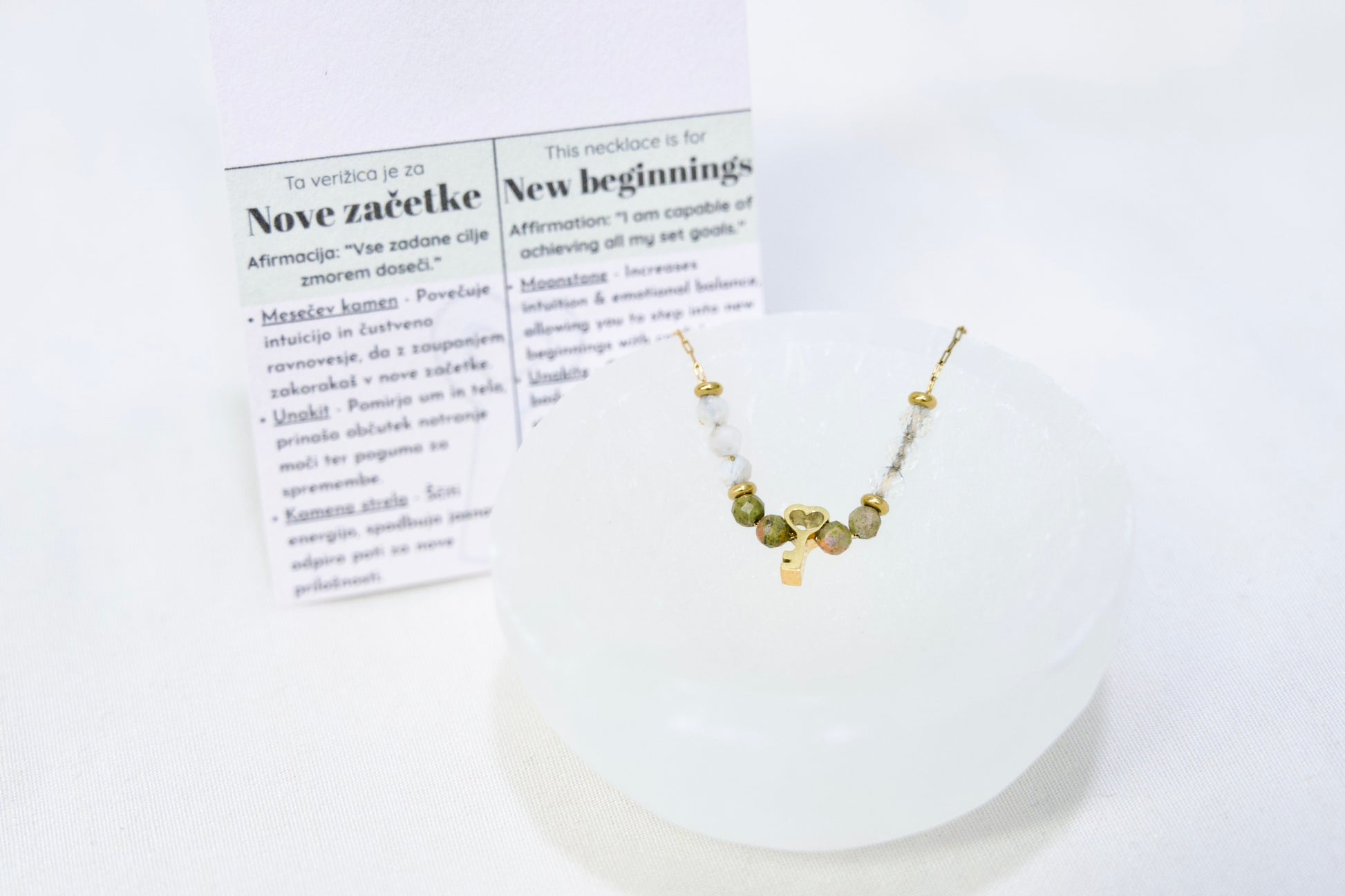 • Priložen listek s pomenom in afirmacijo - popolno za darilo