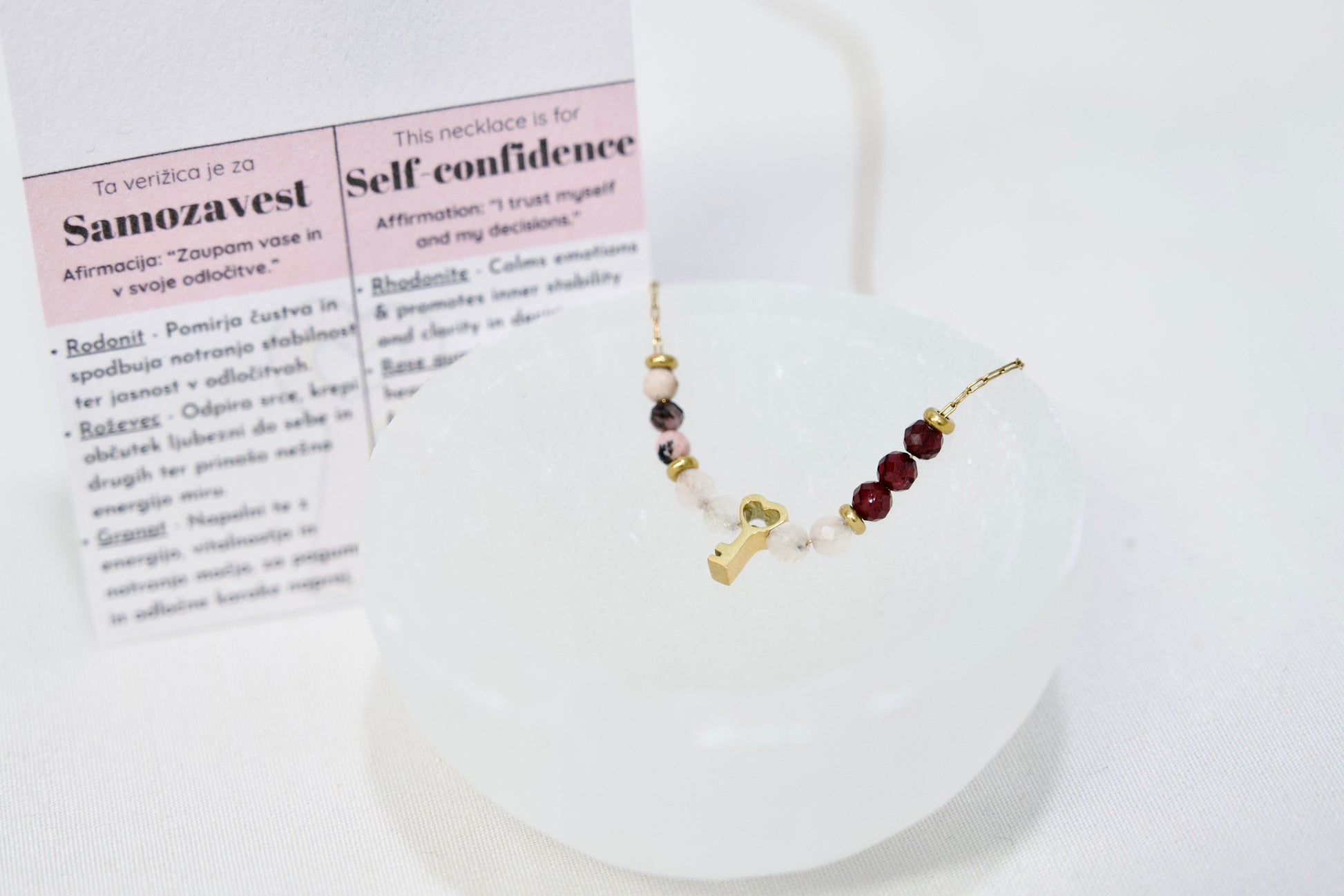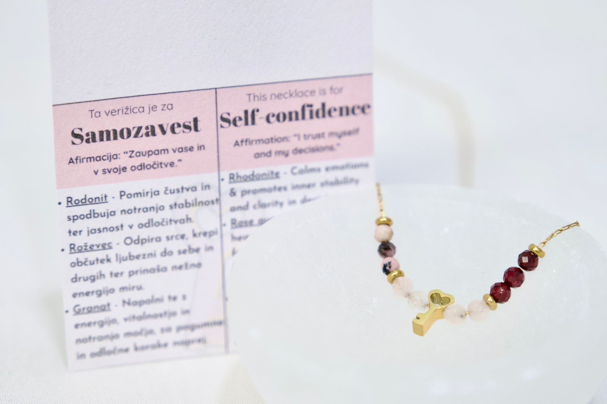• Priložen listek s pomenom in afirmacijo - popolno za darilo