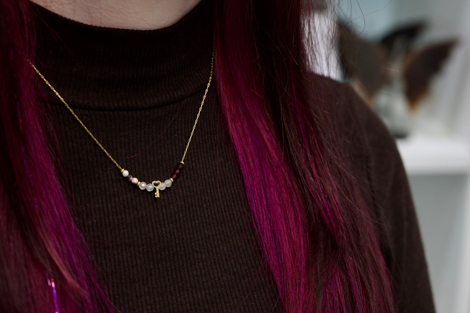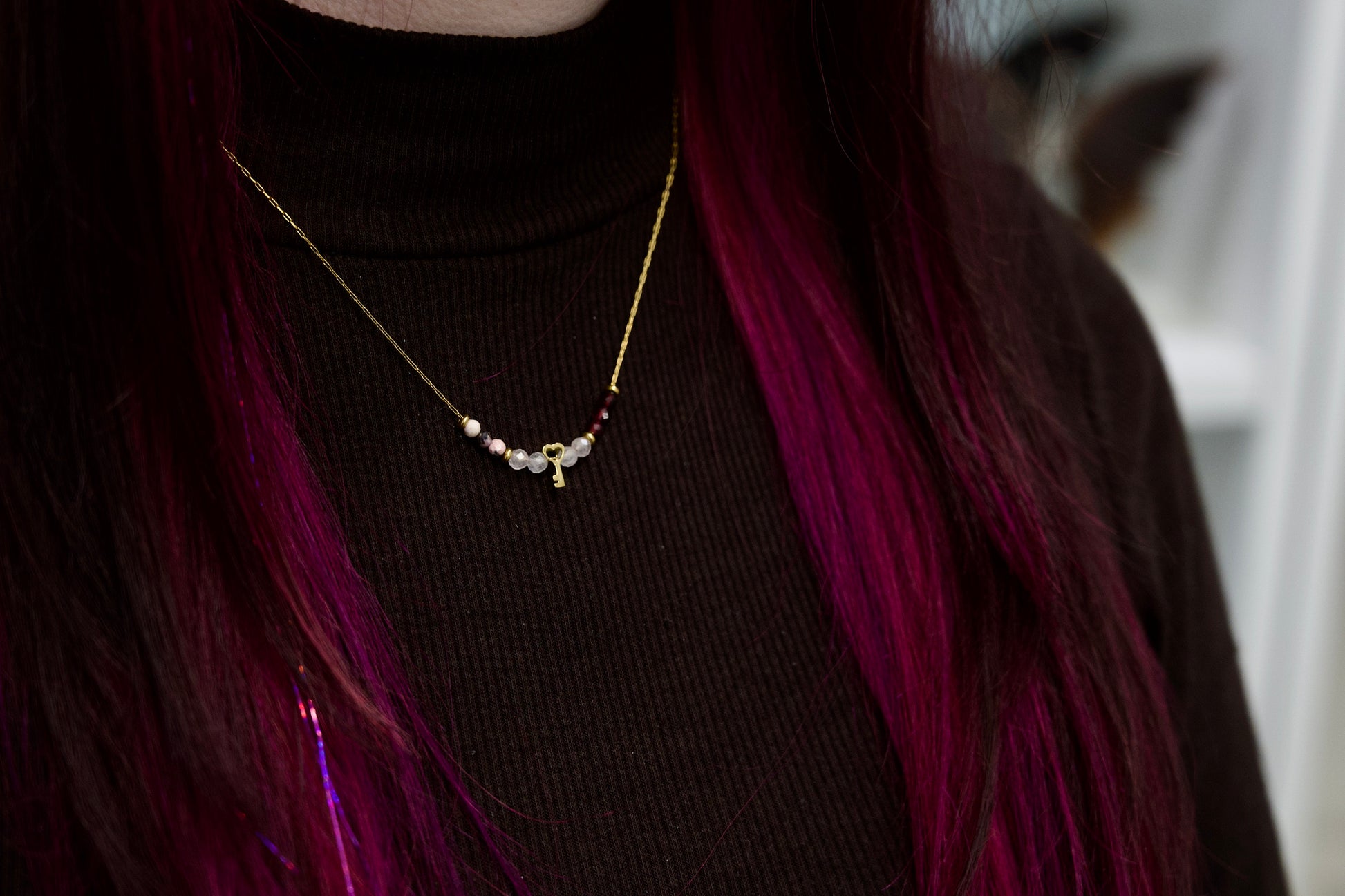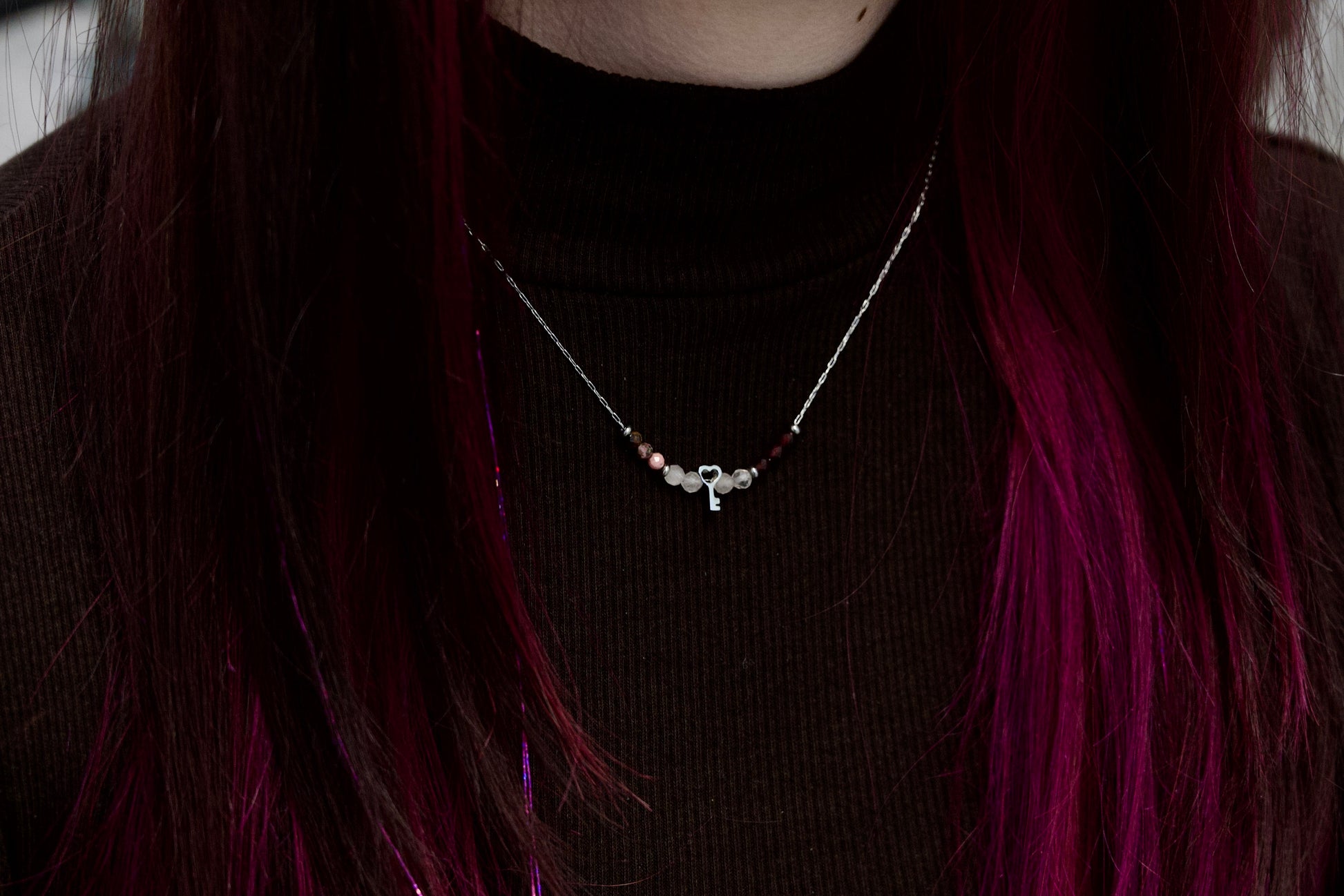 V središču ogrlice visi mini obesek v obliki ključa, ki simbolizira zaupanje vase in notranjo moč.